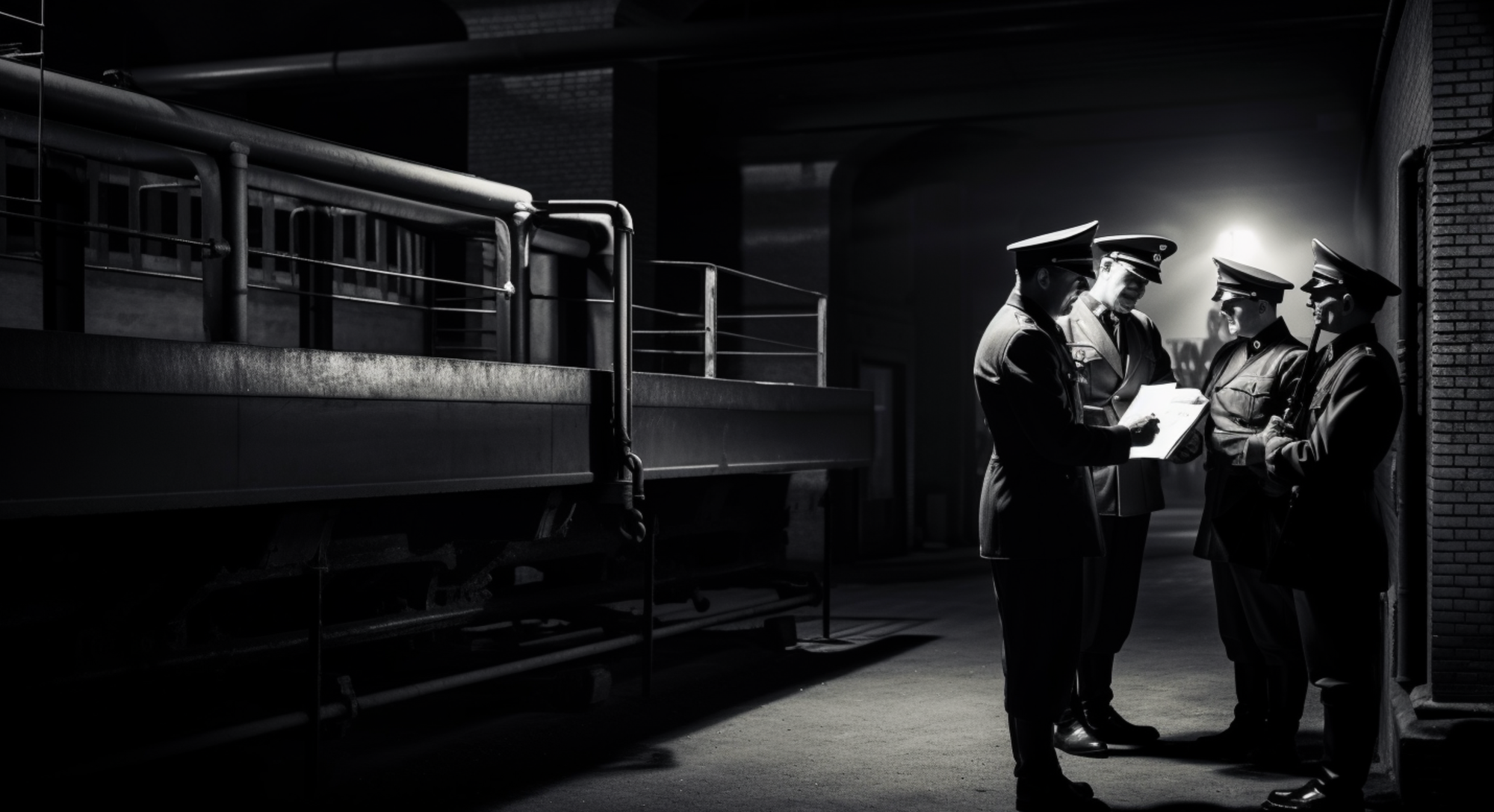 The train sat in the station for what seemed like a long time. No one was allowed to leave the train, or even their compartments. The Border Police and the Gestapo finally got on the train, and moved slowly from compartment to compartment, carefully checking people's passports, papers and names to a number of lists carried by the Police and Gestapo.